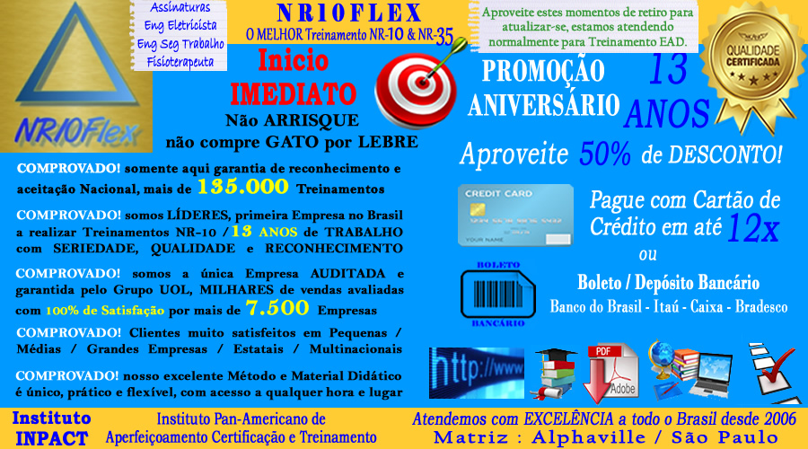 -portanto ao concluir este Treinamento e receber o CERTIFICADO o Aluno estará apto a Autorização quanto a NOVA Norma NR-10, podendo exercer sua Profissão sem RISCOS e Multas.